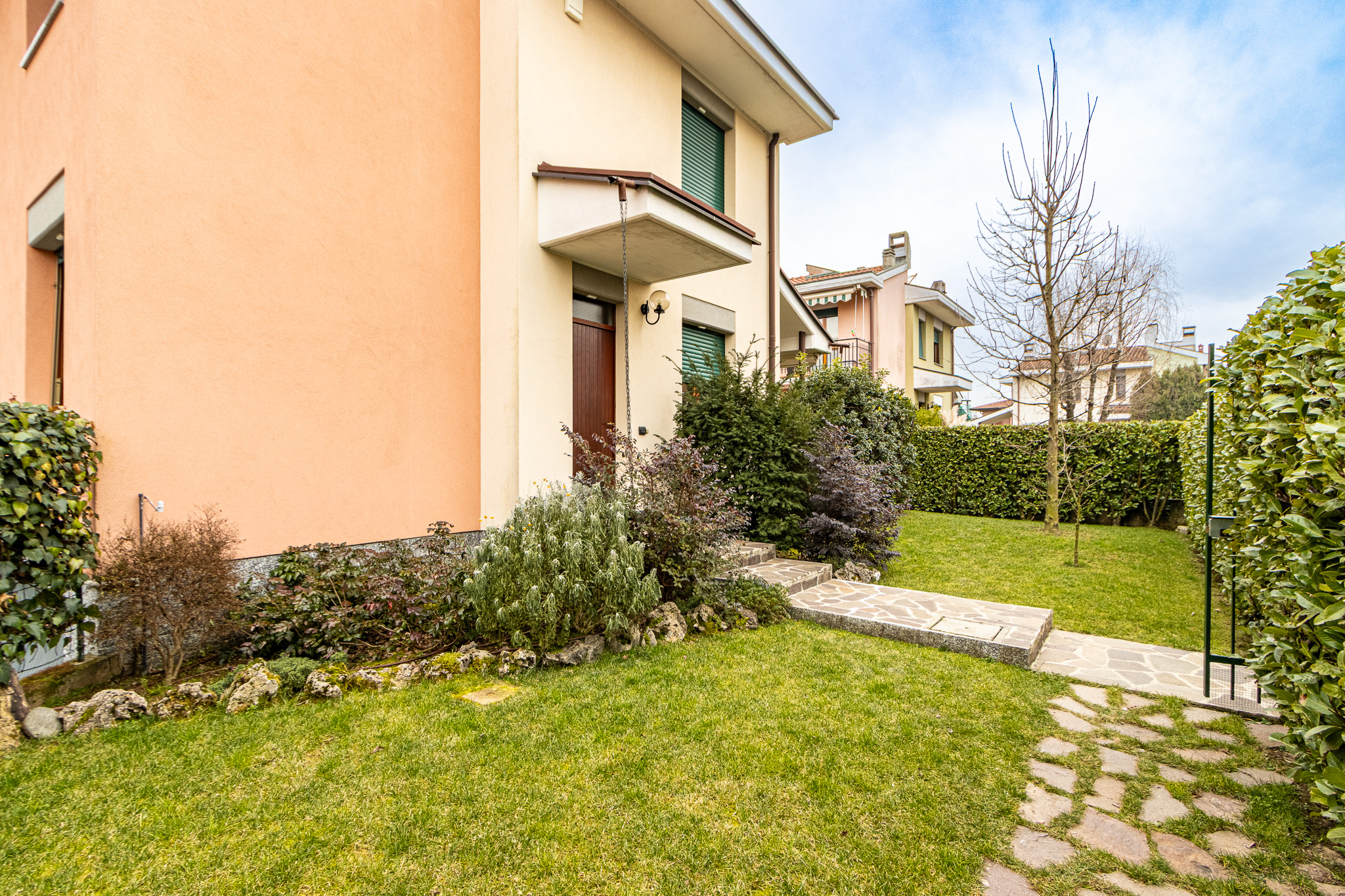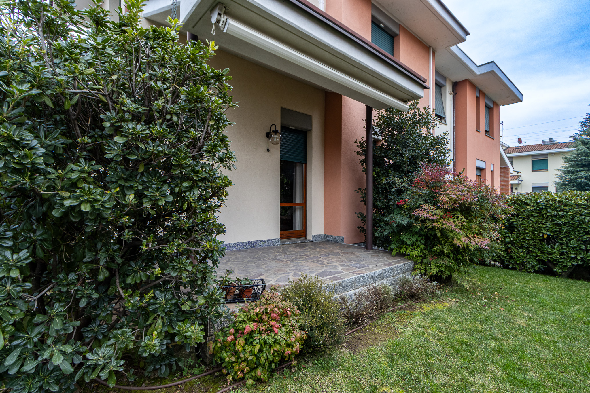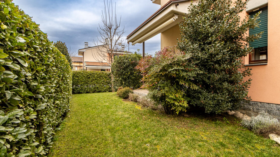 La casa è circondata da un giardino privato, dotato di impianto di irrigazione automatico, che garantisce privacy e vivibilità.